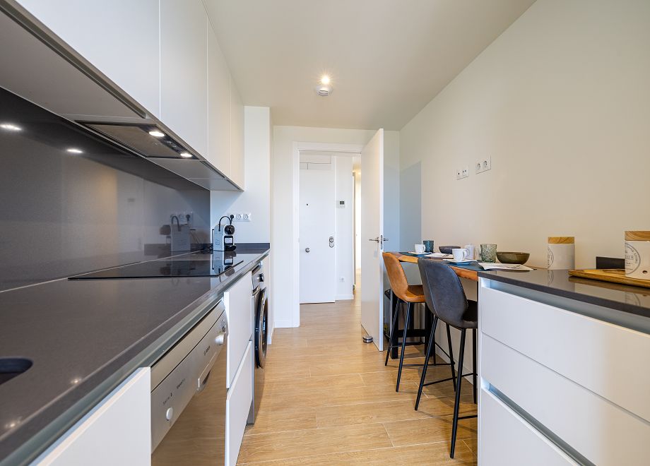 Neben einem Induktionskochfeld mit Dunstabzugshaube befinden sich hier ein Backofen, ein Geschirrspüler, eine Kaffeemaschine (Nespresso), eine Große Kühl-Gefrierkombination und eine kleine Frühstücksbar. Die beiden Schlafzimmer sind mit einem Einbauschrank und einem Boxspringbett (160 x 200 cm) ausgestattet. Die beiden Badezimmer verfügen über eine große Dusche, ein Waschbecken mit Schrank und eine Toilette.