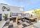 Geradeaus gelangt man in den Wohn- und Essbereich. Dieser ist sehr modern eingerichtet mit einem großen Esstisch, einem gemütlichen 2er Sofa und einem Sessel. Es sind 2 Fernseher mit SAT-TV vorhanden, im Wohnzimmer und in einem der Doppelschlafzimmer. Die Dachterrasse kann über eine Treppe (20 Stufen) vom Wohnzimmer aus erreicht werden. Neben einem bequemen Terrassensofa, einem großen Esstisch, einem Grill und 2 Sonnenliegen befindet sich hier auch ein moderner Jacuzzi für bis zu 4 Personen. Eine große Pergola bietet Schatten für die Sitzecke und den Esstisch. Die Küche bietet Ihnen jeglichen Komfort und ist sehr komplett ausgestattet.