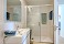 The two bathrooms They have a large shower, a sink with cupboard and a toilet.