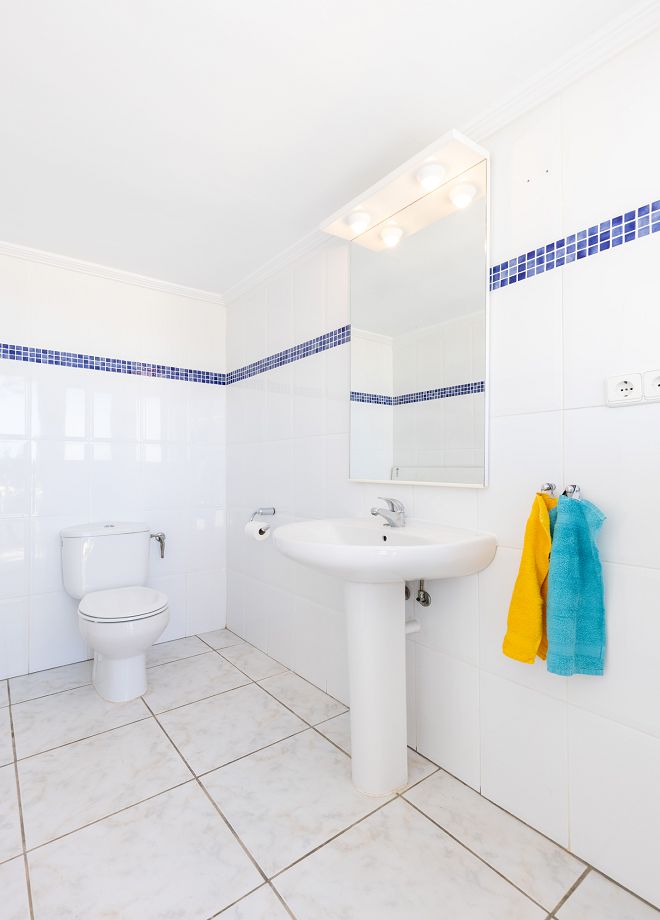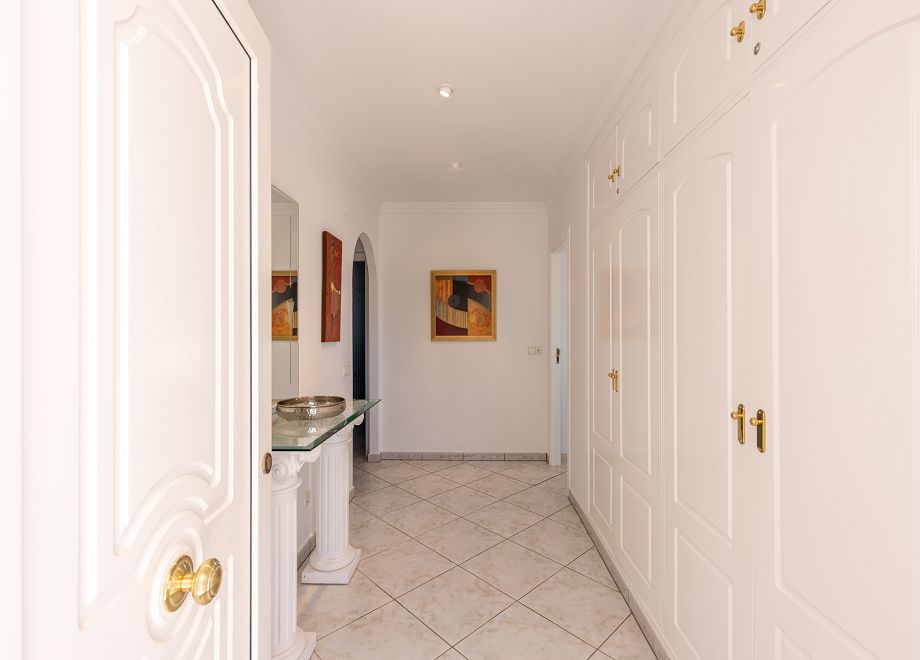 In het achterste gedeelte van de woning, dat alleen van buitenaf toegankelijk is, bevindt zich een berging met een wasmachine, droger en een wastafel. Airconditioning met verwarmingsfunctie in de drie slaapkamers en in de woon- en eetkamer. Bovendien is er voor de koelere dagen vloerverwarming op gas. De twee badkamers zijn voorzien van elektrische radiatoren. Warm water via een gasdoorstroomverwarmer. Alle ramen zijn voorzien van horren en luiken.