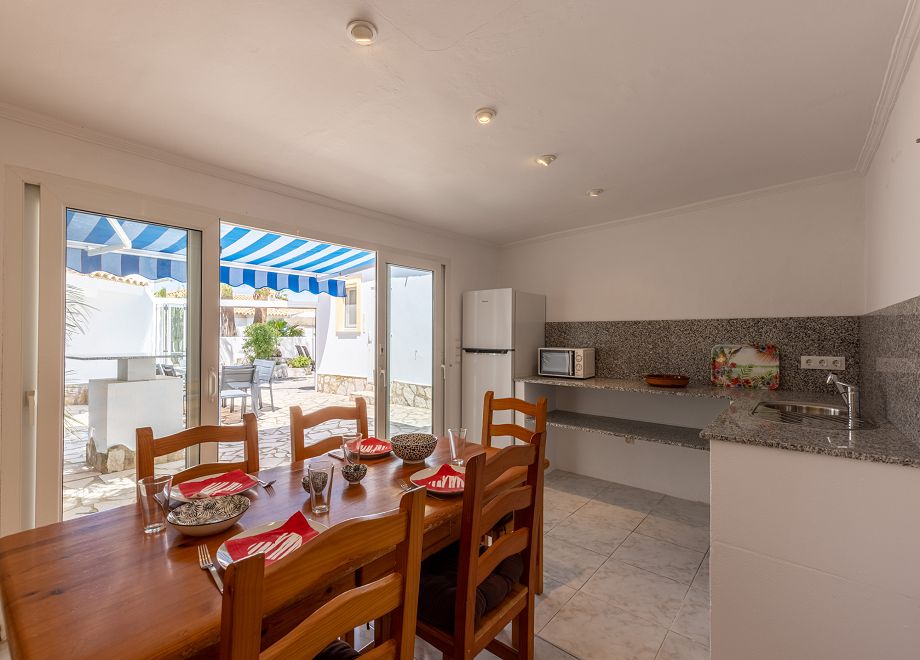 Het centrum van Denia en het dichtstbijzijnde strand liggen op ongeveer 5 km afstand. De dichtstbijzijnde winkelmogelijkheid, een Mas y Mas supermarkt, ligt op 4 km afstand. Andere supermarkten in de stad Denia. De wijk “la Pedrera” ligt op 3 km afstand. Er zijn 4 bars/restaurants, een tennisclub, een kapper, een tabakswinkel, een Duitse dokter en een apotheek. Denia heeft een modern districtsziekenhuis en u vindt er ook andere Duitse artsen en specialisten.