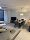 Der Wohn- und Essbereich ist sehr modern eingerichtet mit einem großen Esstisch, einem gemütlichen Sofa und einem Sessel. Ein Flachbildschirm mit SAT-TV ist im Wohnzimmer vorhanden. Die Küche bietet Ihnen jeglichen Komfort und ist komplett ausgestattet. Neben einem Induktionskochfeld mit Dunstabzugshaube befinden sich hier ein Backofen, ein Geschirrspüler, eine Kaffeemaschine (Nespresso), eine große Kühl-Gefrierkombination und eine kleine Frühstücksbar. Das große Schlafzimmer ist mit einem Einbauschrank und einem Doppelbett (160 x 200 cm) ausgestattet. Das kleine Schlafzimmer verfügt über ein Einzelbett 80 x 200 cm, dass bei Bedarf ausgezogen werden kann (160 x 200). Die beiden Badezimmer verfügen über je eine große ebenerdige Dusche, ein Waschbecken und eine Toilette.